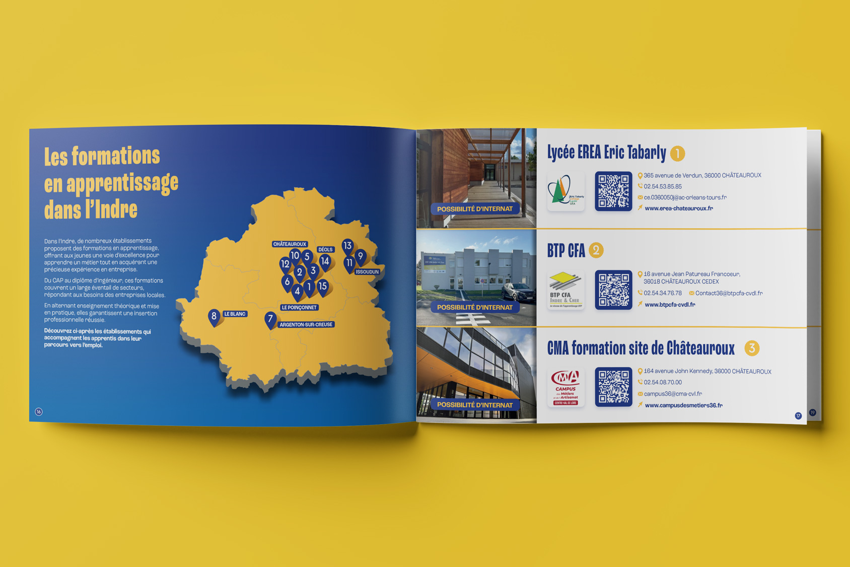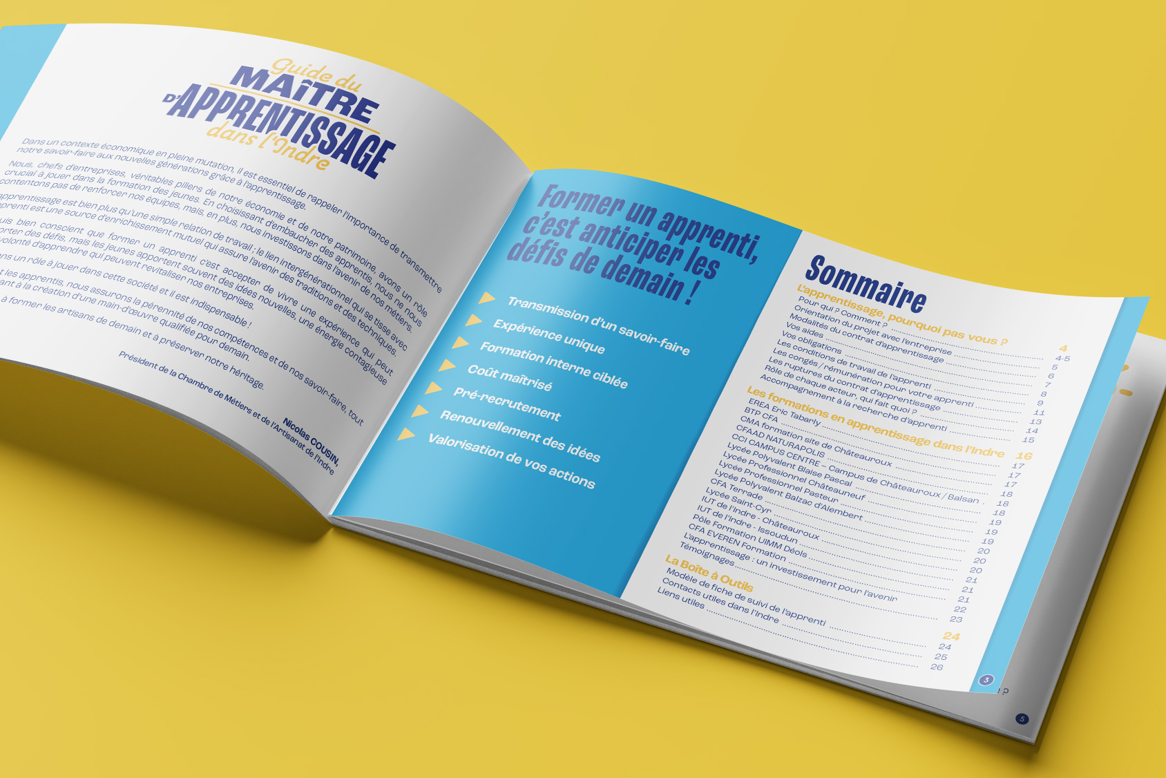 Suite au succès du Guide de l’Apprentissage dans l’Indre destiné aux jeunes en recherche d’une formation en alternance, la DDETSPP 36 et la Chambre de Métiers et de l’Artisanat de l’Indre nous ont confié la création d’un document orienté entreprises. Objectif : faciliter, de A à Z, la mise en place d’un contrat d’apprentissage au sein des structures du territoire.